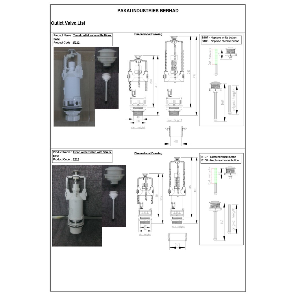 Pakai Trend Single Flush Push Button Outlet Valve (F212) - 40MM/50MM Base