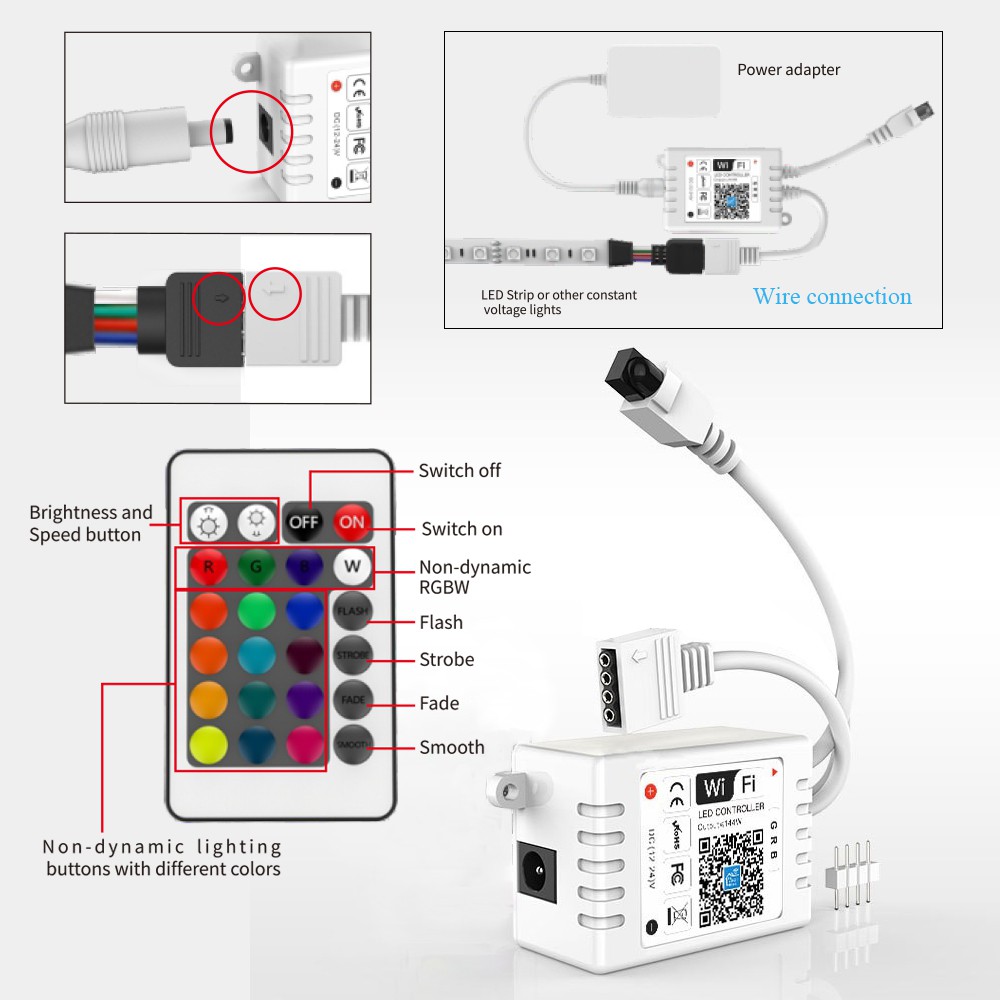 Palam lampu jalur 5730 2835 strip light plug with adapter 5730 connector RGB wifi controller