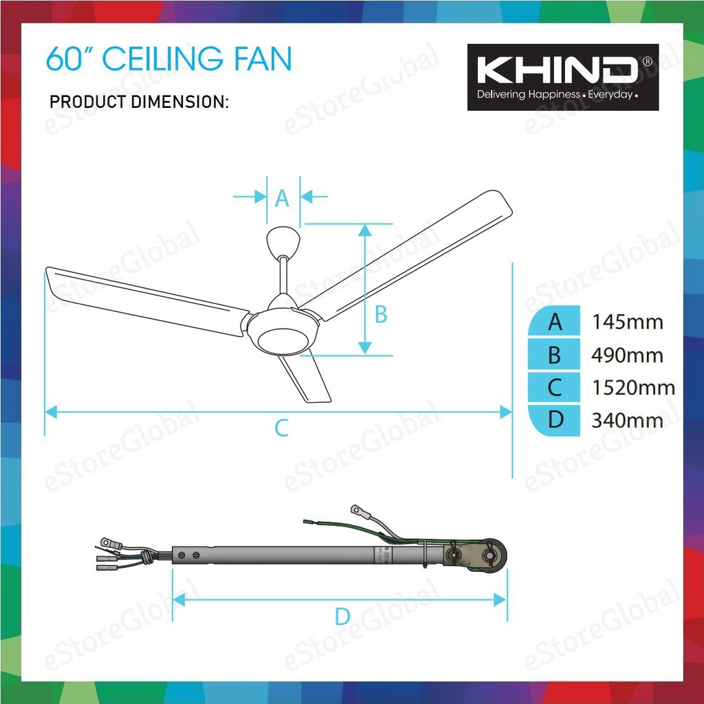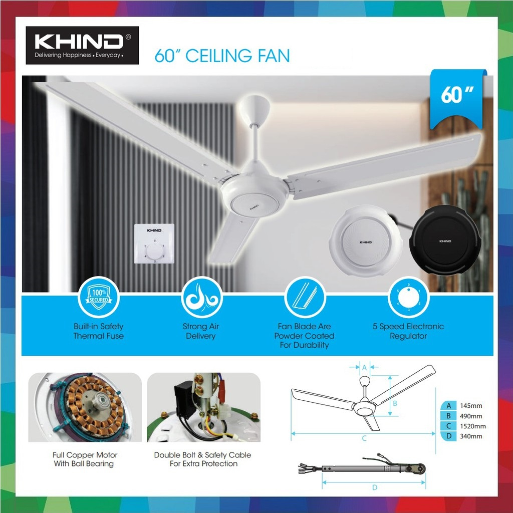 Panasonic 60" Ceiling Fan F-M15A0VBWH/ KHIND CF618 Ceiling Fan / Kipas Siling Kipas Syiling