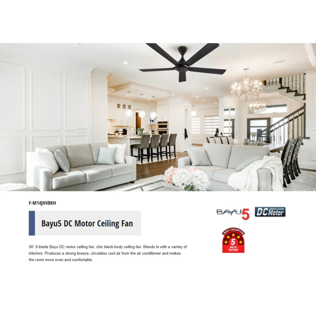 Panasonic Bayu 5 56" 5 Blades Remote Control Ceiling Fan Kipas siling F-M14JHVBKH/F-M14JHVBWH NEW 2025(Black/White)