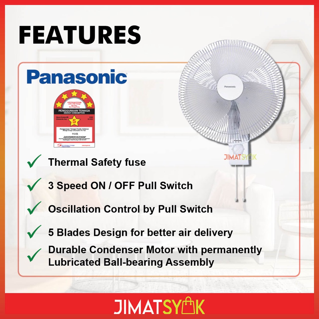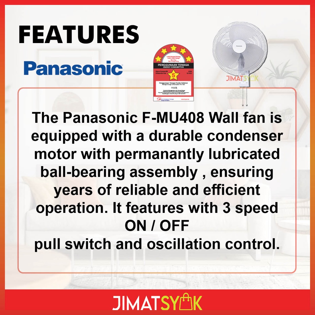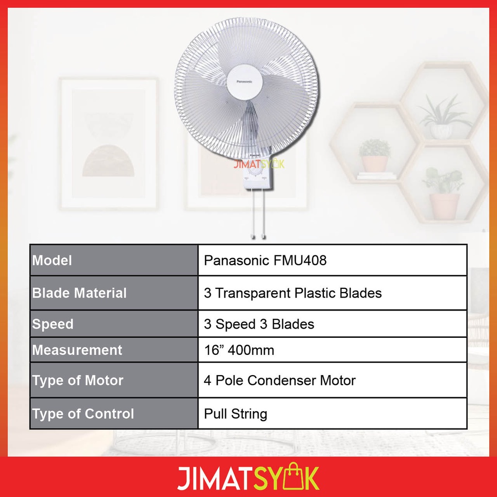 Panasonic Fan Panasonic FMU408 Wall Fan 16inch 3 Blades White Wall Fan Kipas Dinding