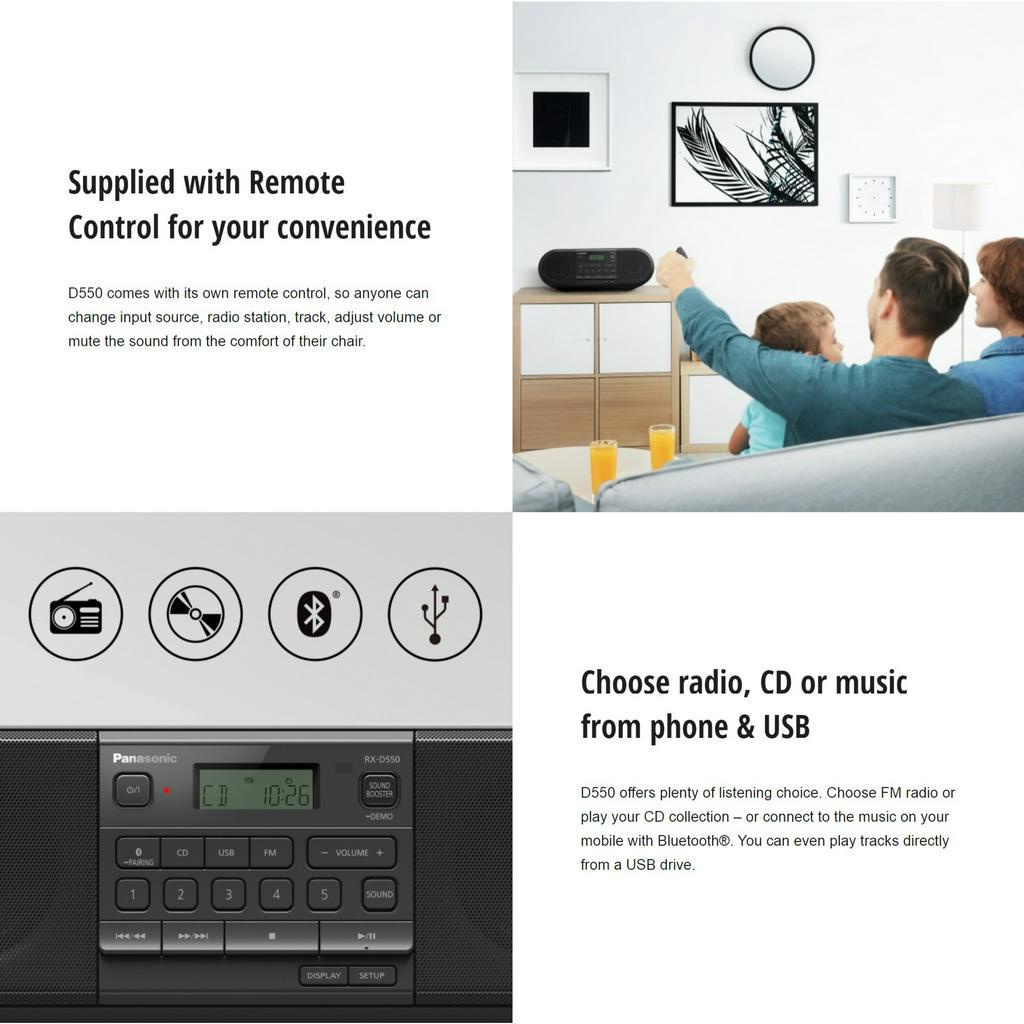 Panasonic Powerful Portable FM Radio & CD Player with Bluetooth | RX-D500GSX-K RX-D550GSX-K USB Player MP3 Speaker Audio