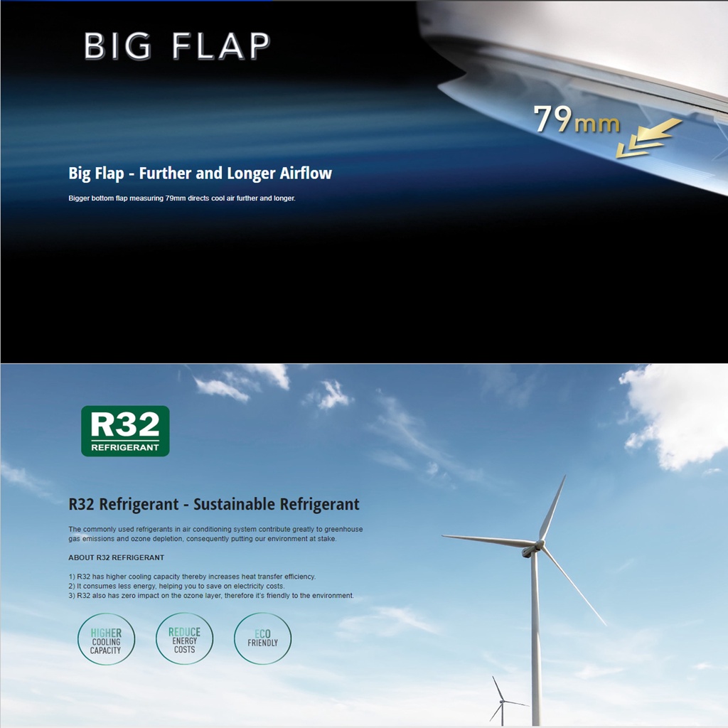 Panasonic Air Conditioner 1.0 / 1.5 / 2.0 / 2.5HP R32 ECO INVERTER / NON INVERTER , Fast Cooling