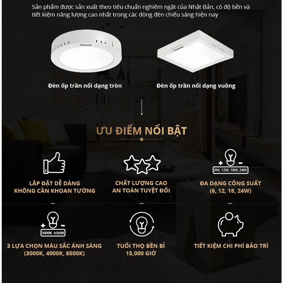 Panasonic Surface Mounted Ceiling Light Capacity (6W, 12W, 18W, 24W), Round & Square Ceiling Light