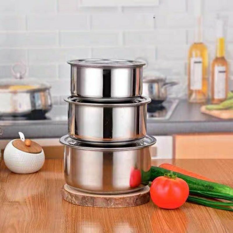 WHOLESALES💥3 In 1 Thick Conditioning Stock Pot Stainless steel Food Storage Cooking Pot Set With Lid 3 pcs