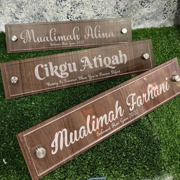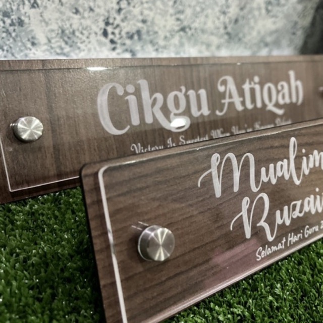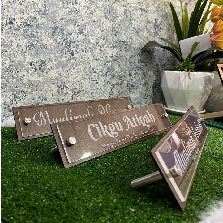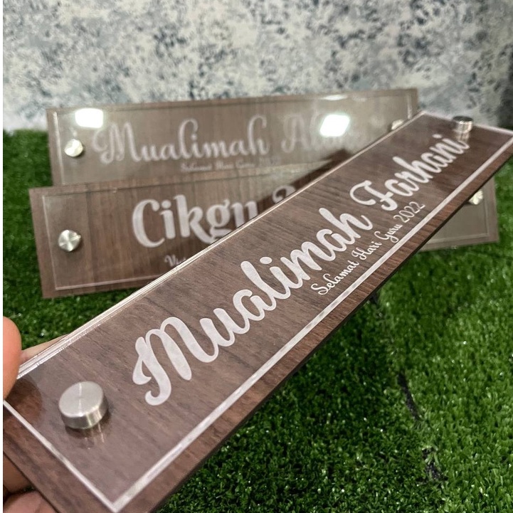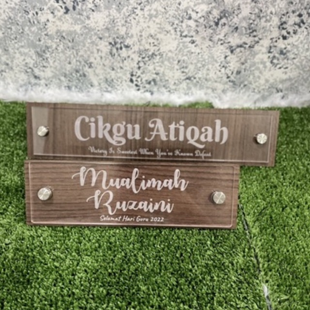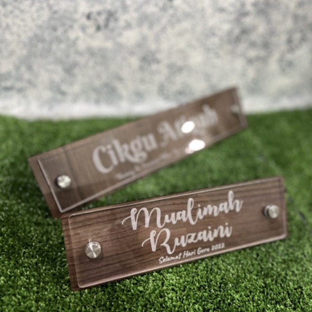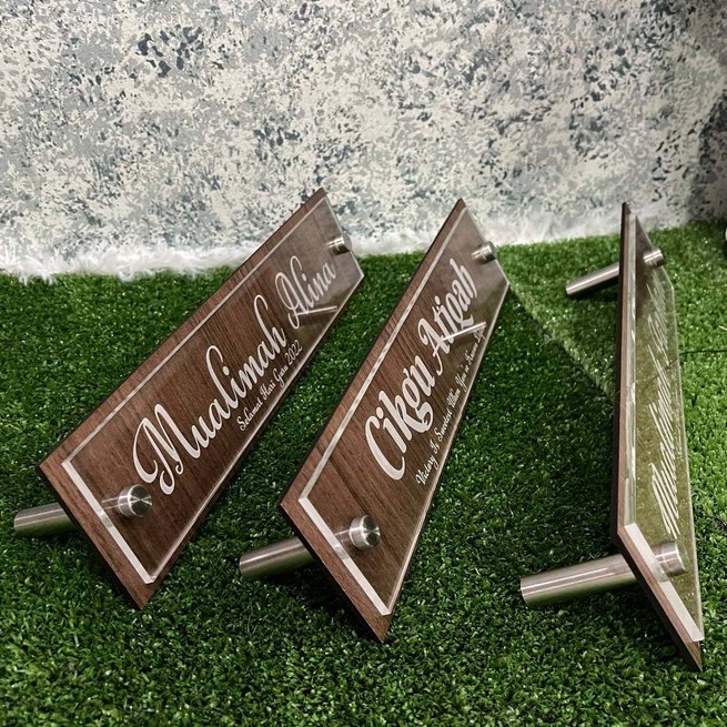 Papan Tanda Nama Meja Acrylic + Kayu - Laser engraved - Custom Made