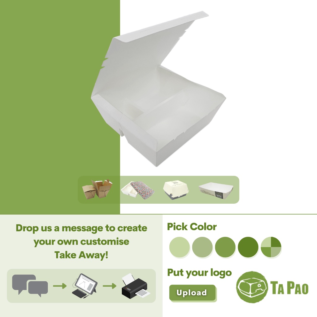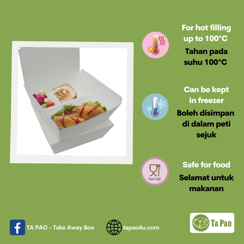 Paper Lunch Box 3 Compartments | 200 pcs | Paper Food Box | Paper Take Away Box | Tapao Food Delivery