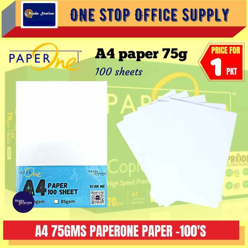 Paperone A4 Paper 100 Sheets / Kertas Putih A4 / White Paper / A4 Paper 70gsm 80gsm
