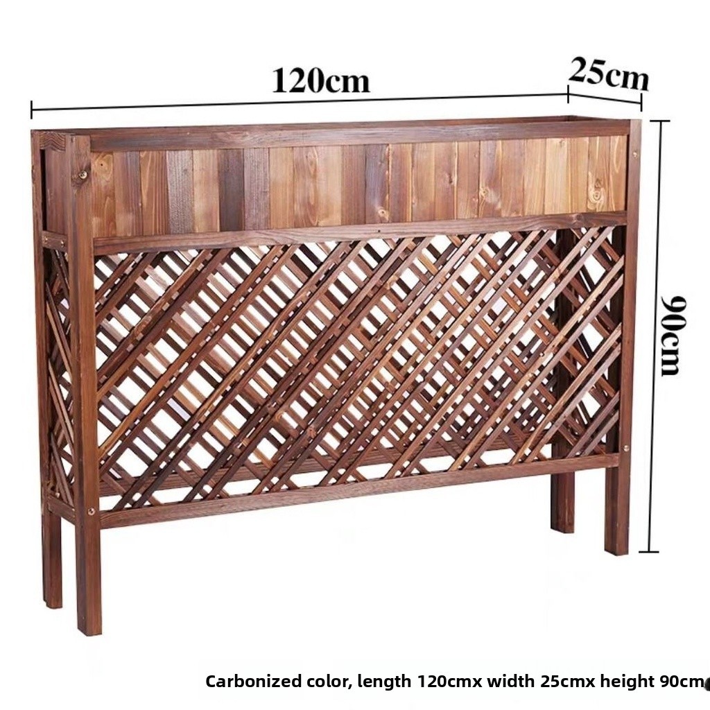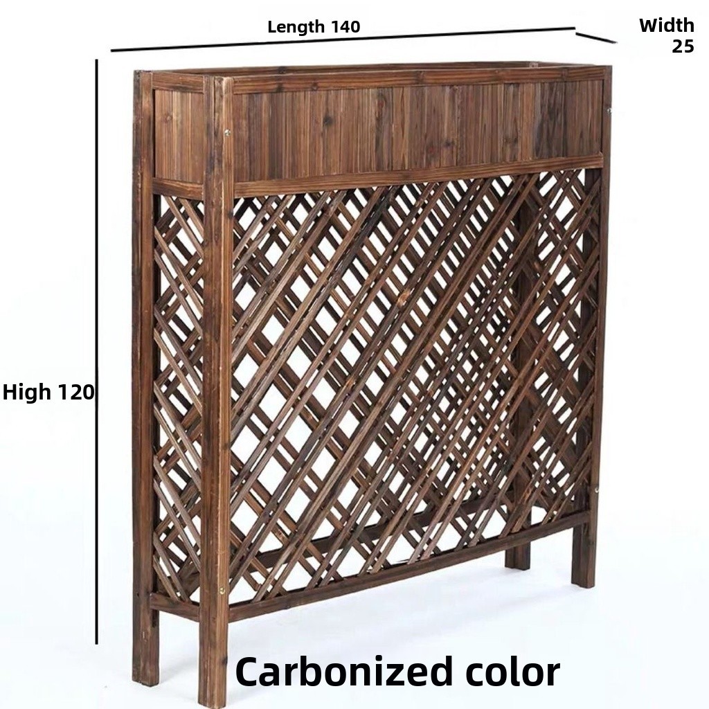 Partition Flower Stand Outdoor Planter Carbonized Grid Flower Box Restaurant Wooden Fence Restaurant Decoration Jardiniere Anti-Corrosion Solid Wood/Wooden Plant Rack Fence Flower