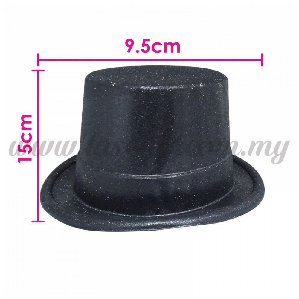 Party Hat - Plastic Top Hat Glitter Black