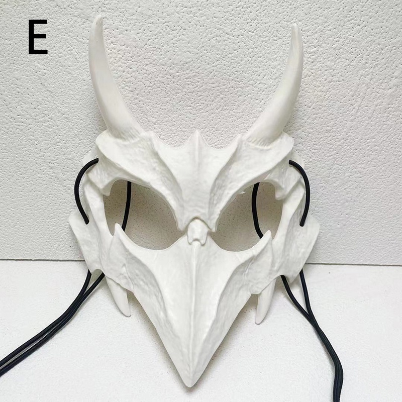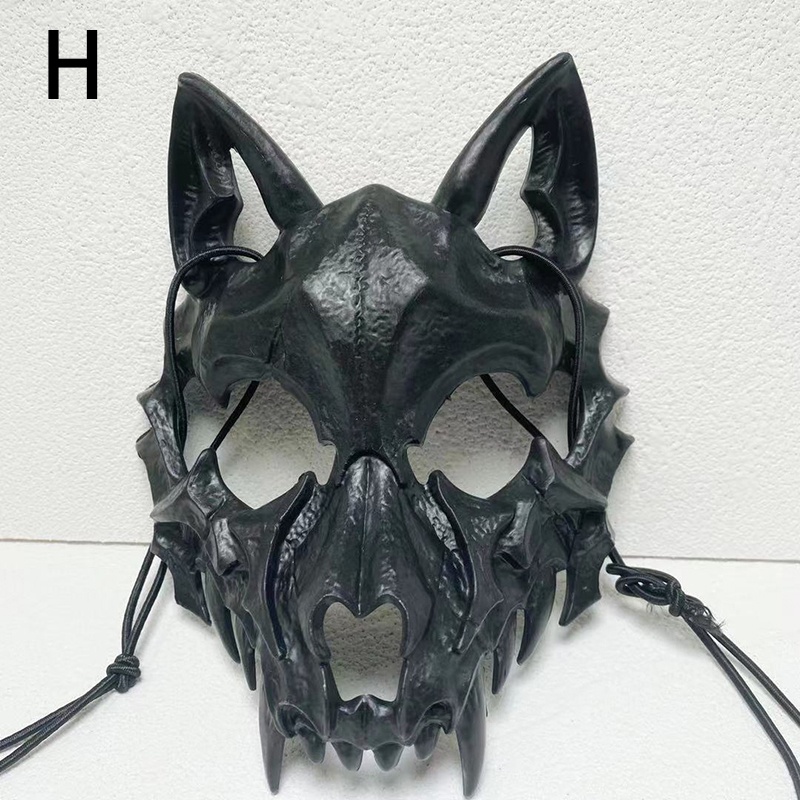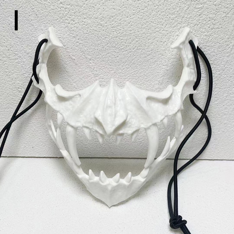 Party Mask Long Teeth Demon Samurai White Bone Mask Wolf Dragon Tiger Mask Cosplay Halloween Props