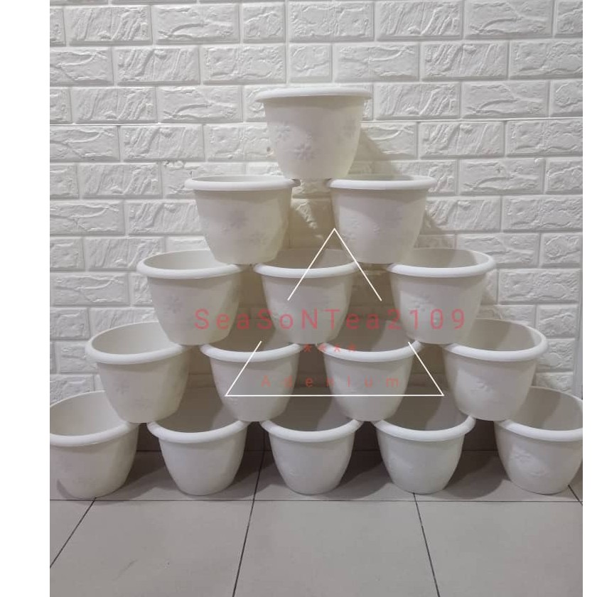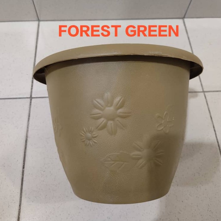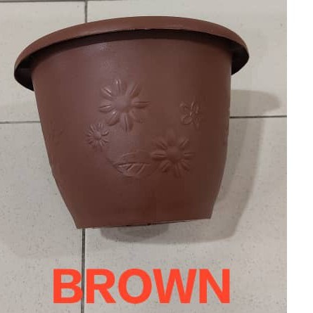 Pasu Bunga Plastik Bulat Bercorak Bunga Cantik 20.5cm X 20.5cm X 15cm
