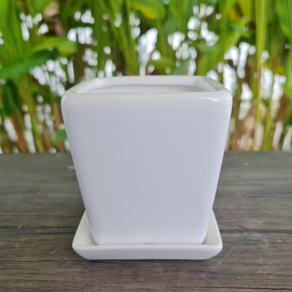 Pasu Seramik Putih Petak Square White Ceramic Pot Pasu Pokok Hiasan Pasu Gubahan Orkid by Florafame (PSP12)