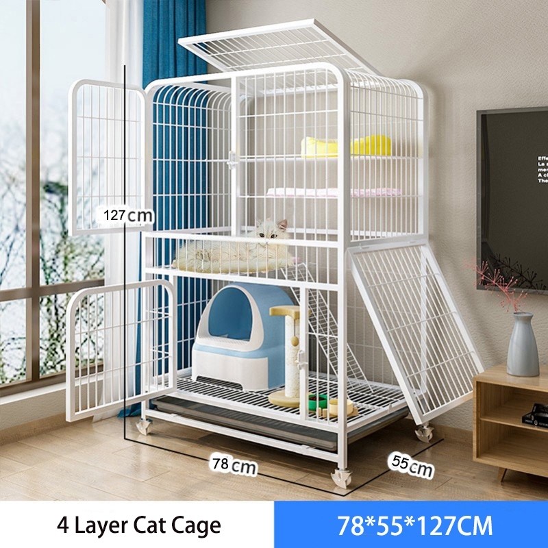 Pawfect Mobile Large Iron Cat Cage 2/3/4 Layer Cat Villa 4 Layer Metal Steel Cat Cage Cat House