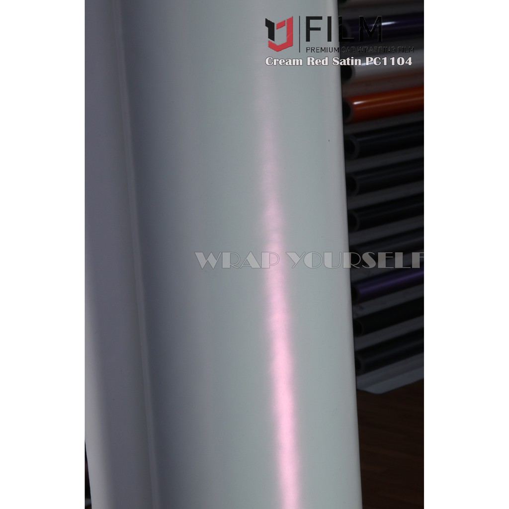 Pc1104 white change satin red car wrap Cream Red Satin sticker air free bubble pearl white chameleon Pc1104