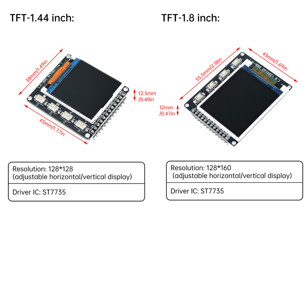 Pcbfun 0.96/1.3/1.44/1.8-inch TFT IPS Color Screen LCD Display Module with 4 Buttons ST7735 / ST7789 Driver Interface SPI