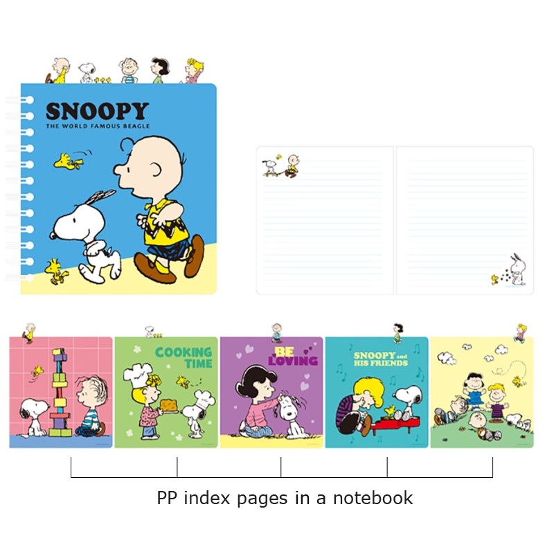Peanuts Snoopy Index Lined Spiral Notebook Hard Cover Spring Notepad Cute Korean Stationery Charlie Brown Woodstock