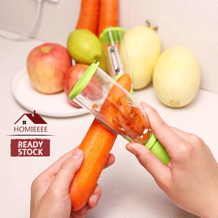 Peeler with Trash Cylinder🔥Ready Stock🔥Fruit Vegetable Slicer with Cylinder Storage Pengupas Buah Kulit 削皮收纳神器