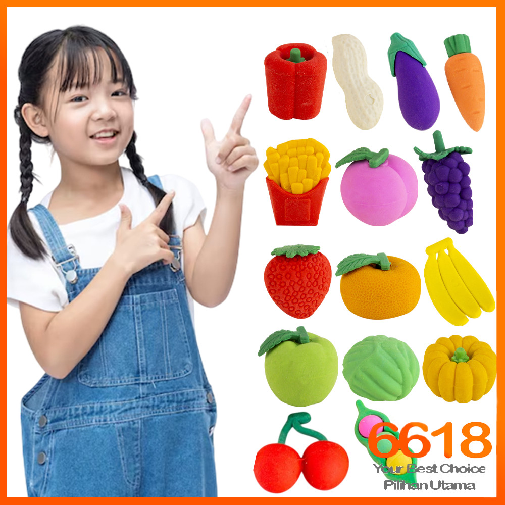 Pemadam Makanan 3D Buah Menyeronokkan Pemadam Comel Bentuk Sayur Dan Buah Alat Tulis Pelajar Sekolah