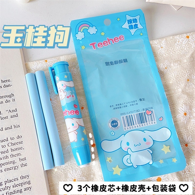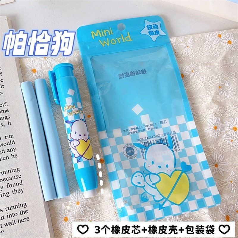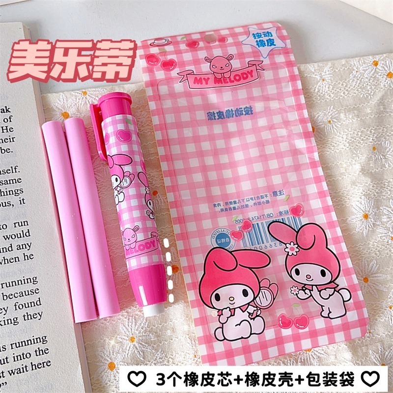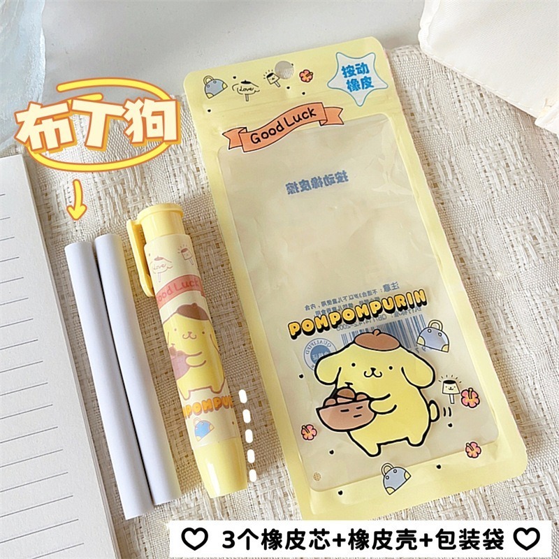 Pemadam tekan kartun Sanrio set alat tulis pelajar kanak-kanak comel dan kreatif dalam beg.
