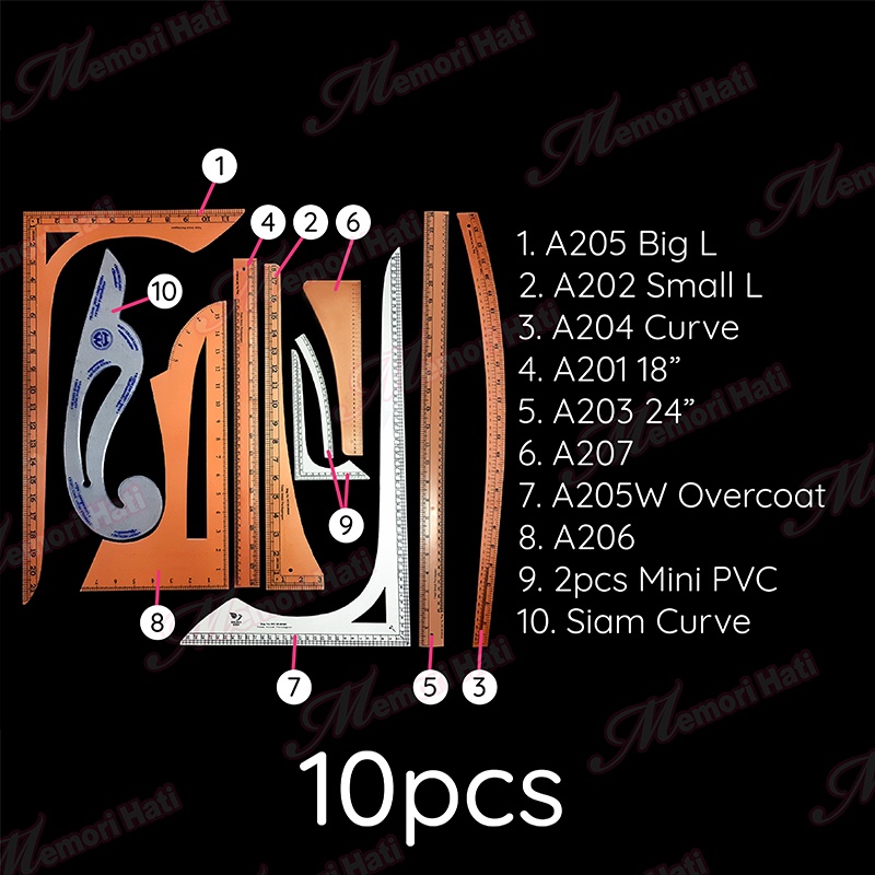 10pcs PVC Tailoring Ruler Set / Pembaris Jahitan