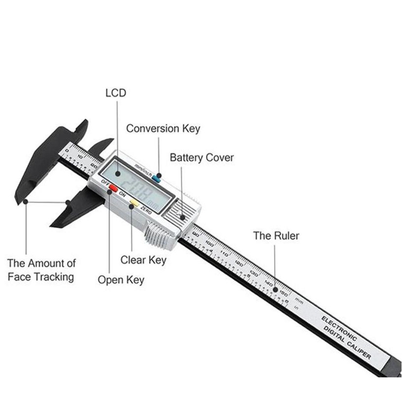 Pembaris Ukur Digital 150mm/6 Inches LCD Digital Electronic Caliper Carbon Fiber Composites Measurement Tool Pengukur