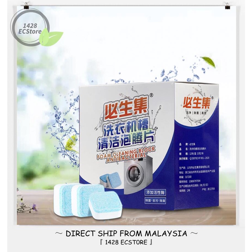 Pembasuh Mesin Baju Washing Machine Cleaner Wash Drum Cleaner 12 pcs Tablet ECO Effervescent Laundry Washer Tube Cubes