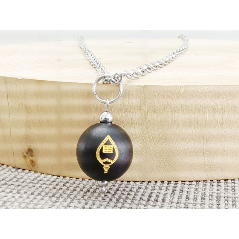 Penawar Hitam Bead Pendant with Engraving Works Vel Symbol