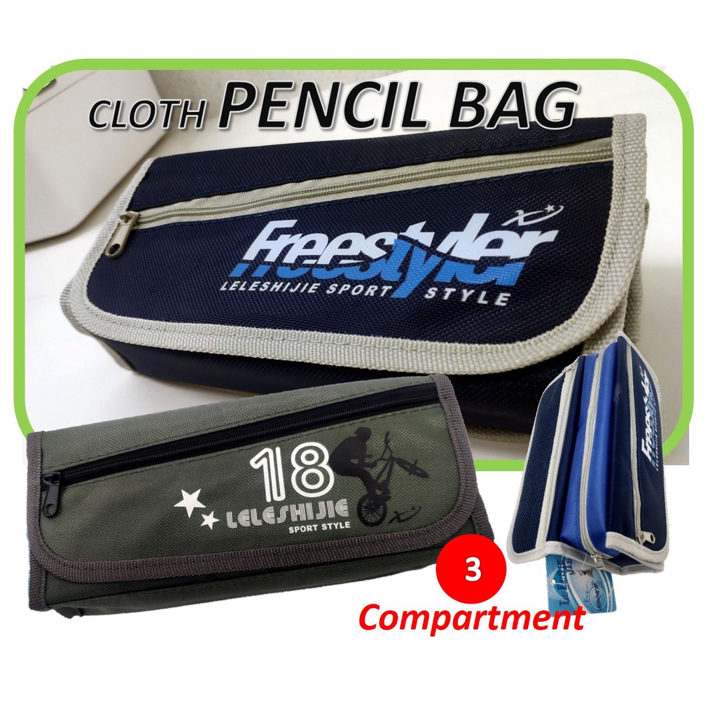 Pencil Bag Pencil Case Pencil box Cloth Canvas 3 Compartments Zip Netting / Kotak Pensil