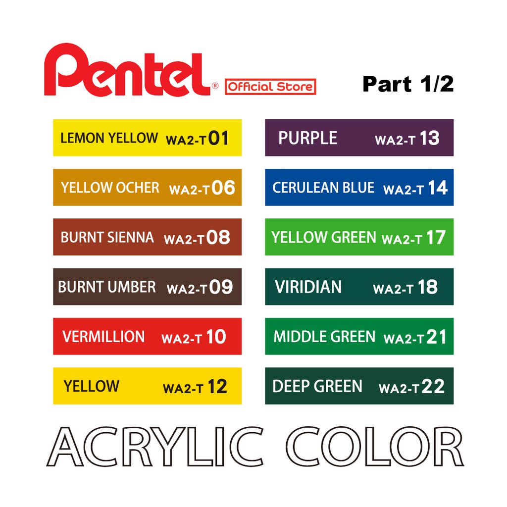 Pentel WA2-T Acrylic Colour - Normal Colour Set