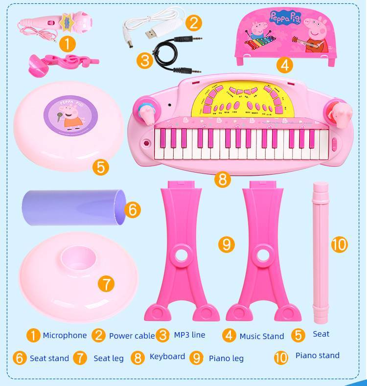 Peppa Pig Musical Instrument Electronic Piano Toy Organ Set Kids Pianos Keyboard Toys with Microphone