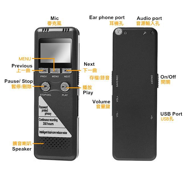 Perakam Suara 350 Jam MP3 Digital Pro Grade