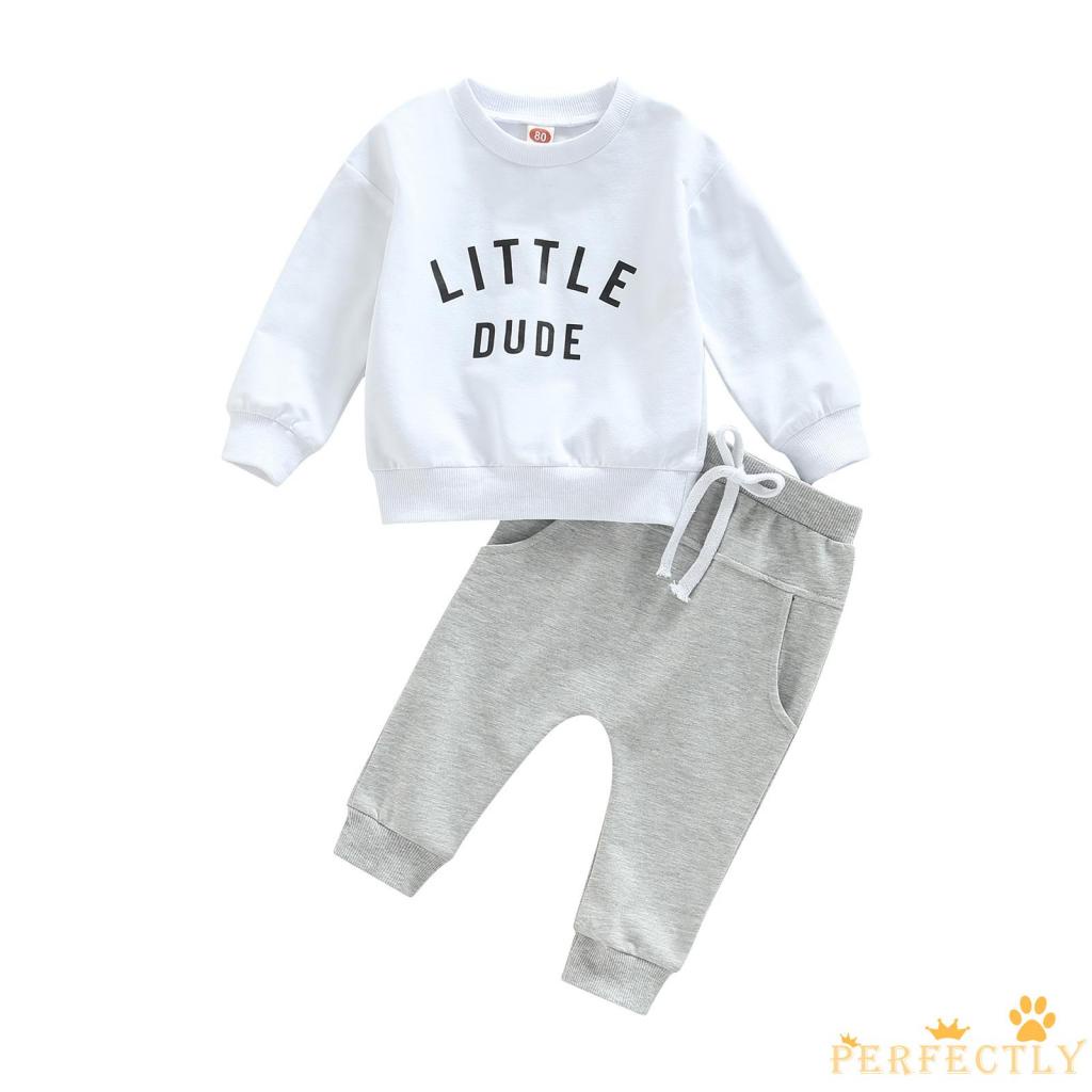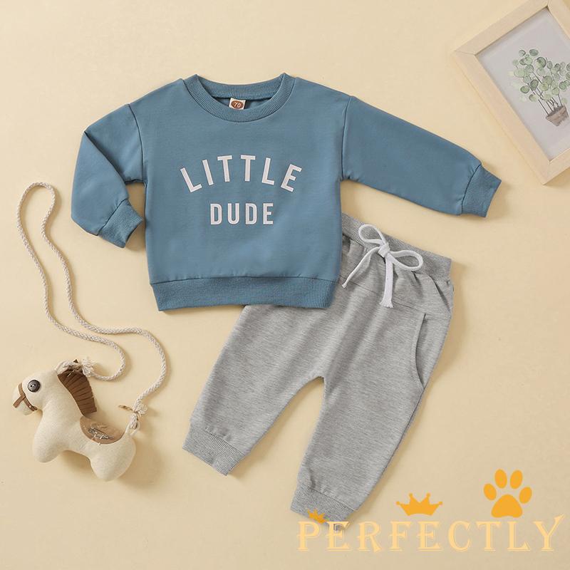 PEF-Baby 2pcs Suit, Fall Long Sleeve Round Neck Letters Print Shirt + Casual Street Long Drawstring Trousers