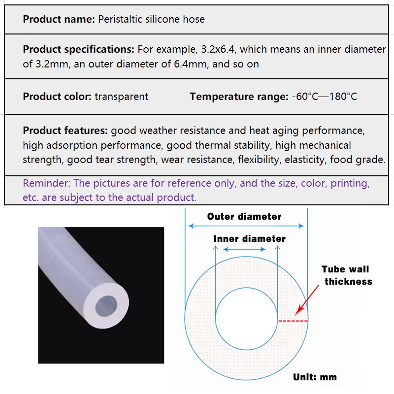 Peristaltic pump silicone tube Food grade hose Transparent high and low temperature resistant peristaltic pump water tube High tear resistance silicone soft pump tube