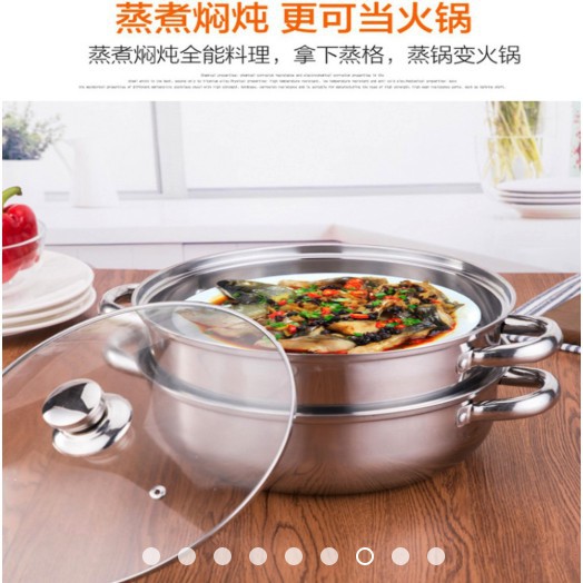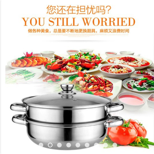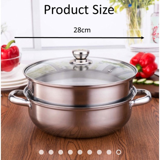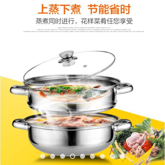 Periuk Masak Periuk Kukus Pengukus Steam Pot 2 Layer Stainless Steel Steamer Cookware Steamboat Hotpot