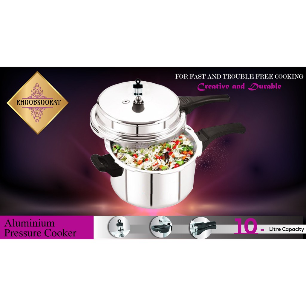 Periuk Tekanan Tinggi Aluminium Jenama Khoobsoorat Pressure Cooker(3L - 10L)-Free Spares(Valve & Gasket)