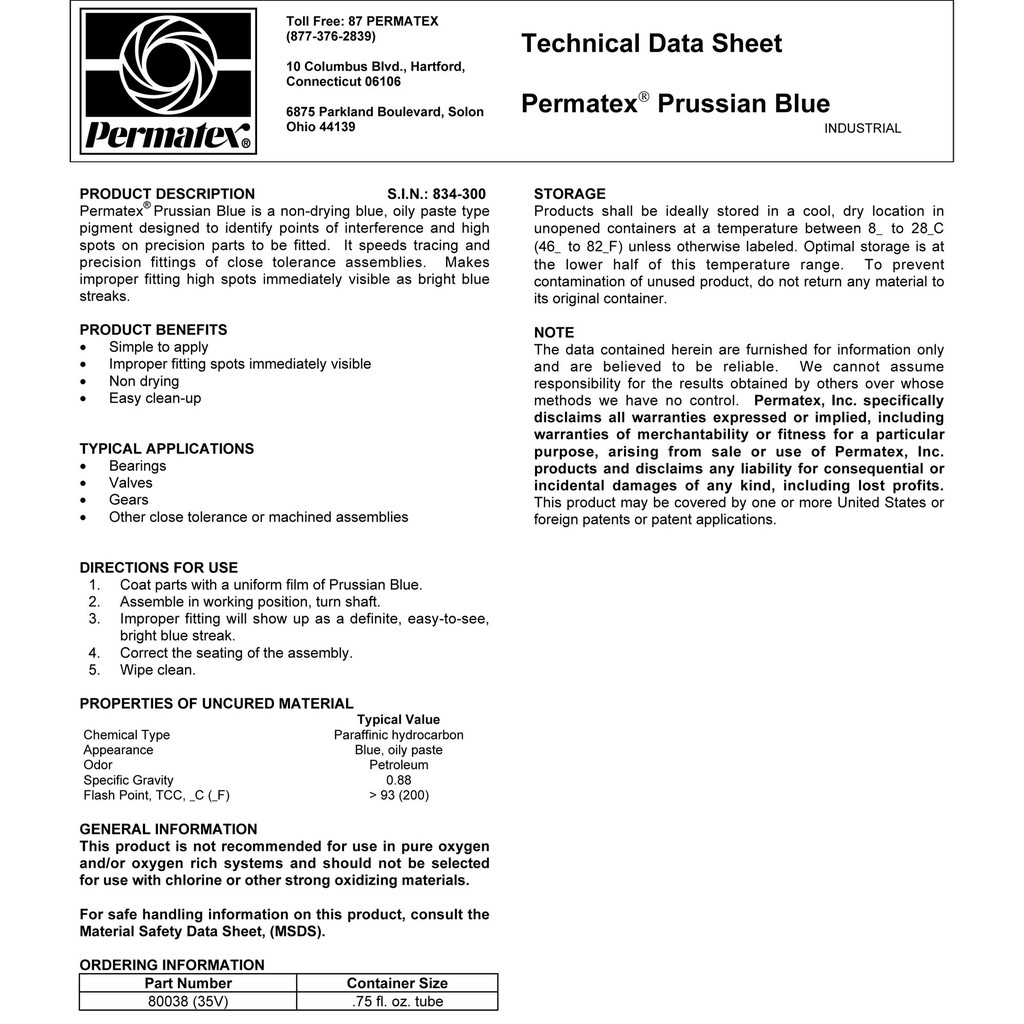 Permatex 80038 Prussian Blue 22ml 0.75 fl oz tube 35V Malaysia Supplier