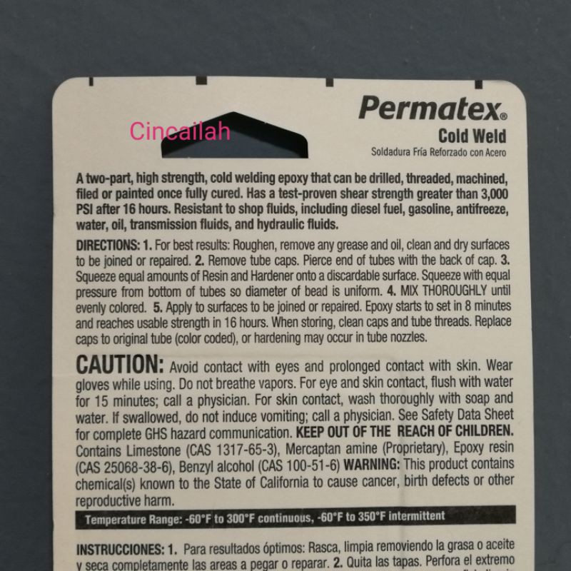 Permatex Cold Weld 2 Ton Epoxy Mix Gum Glue 56g 14600