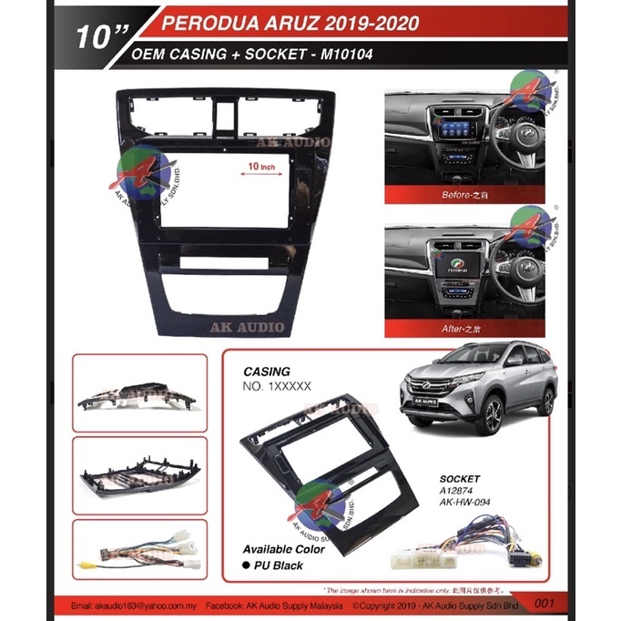 Perodua Aruz 2018 - 2021( UV Light Black ) 10" Inch Android Casing + Socket- M10104+A12874