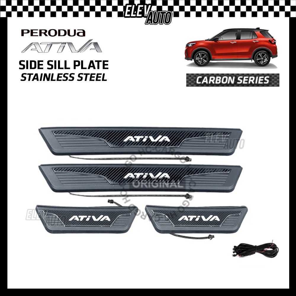 Perodua Ativa CARBON STAINLESS STEEL LED Side Step Sill Step Sill Plate Door Step Scuff Perodua Ativa Accessories