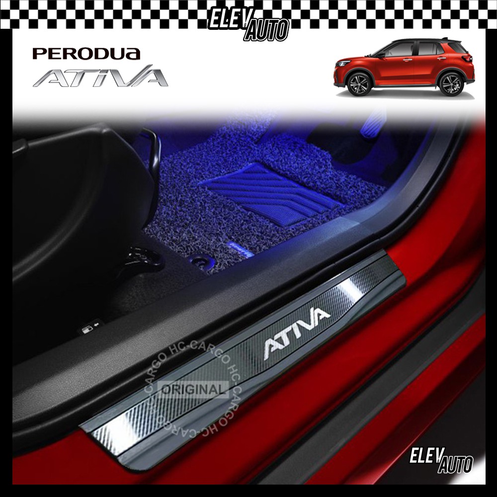 Perodua Ativa CARBON Series Stainless Steel Side Step Sill Step Sill Plate Door Step Scuff Perodua Ativa Accessories