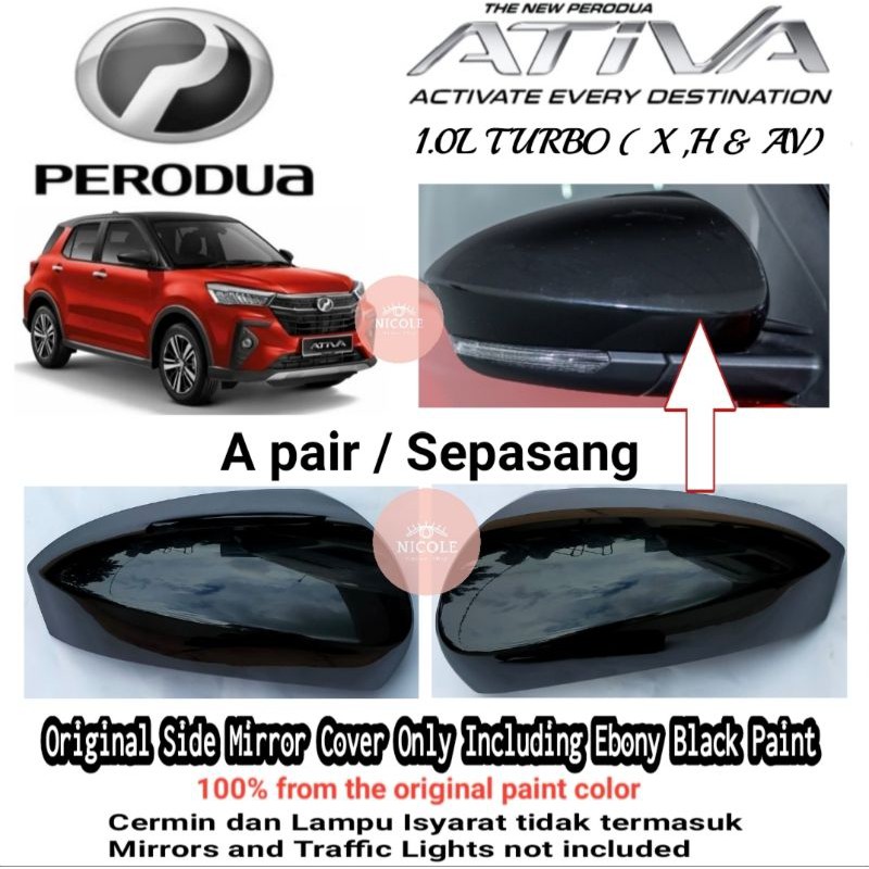 Perodua Ativa Side Mirror Cover Only Including Ebony Black Paint