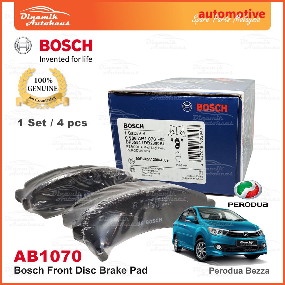 Perodua Bezza Car Front Wheel Disc Brake Pad Brek Pad Tayar Depan Bosch Front Brake Pad AB1070