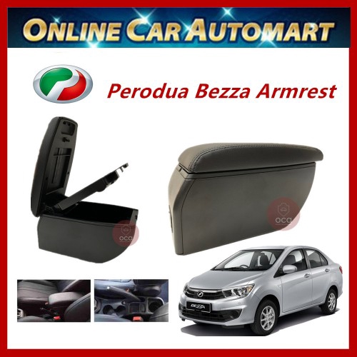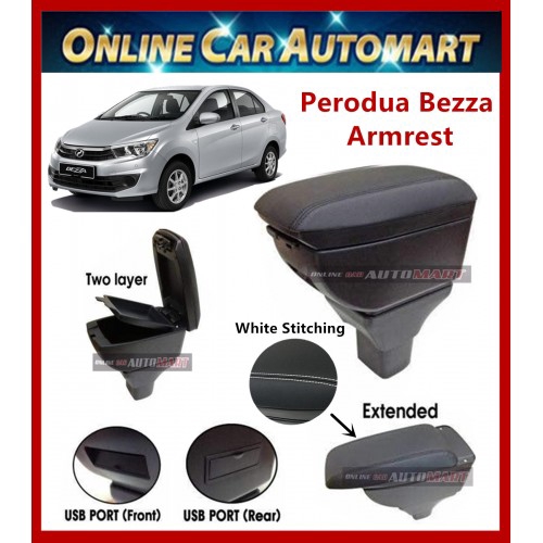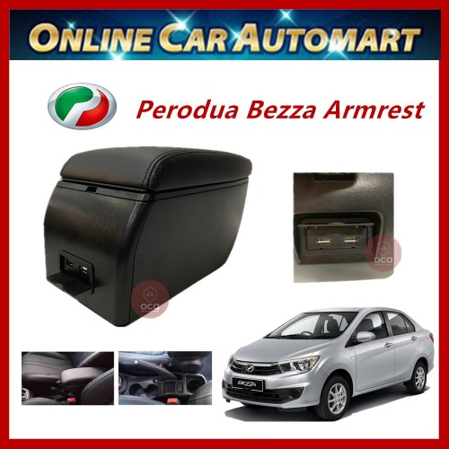 Perodua Bezza PVC Adjustable Armrest Console Box Black Leather with USB Charger