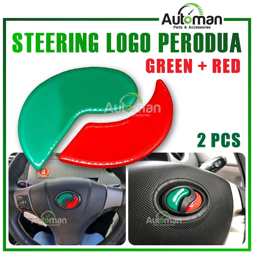 Perodua Front Rear Reflector Emblem 3D Logo Bonnet Emblem Sticker Red Red Green 2 Tone
