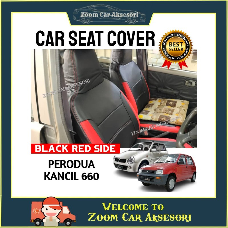 Perodua Kancil 850 / 660 Car Seat Cover PVC Leather Black colour Red Side Cushion Cover