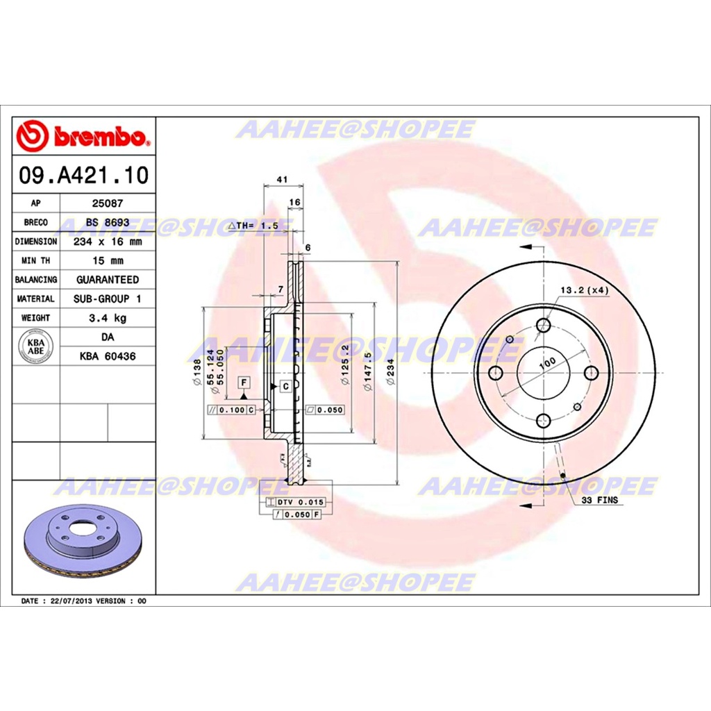 Perodua MYVi 2005 Front Brake Disc Rotor Original BREMBO