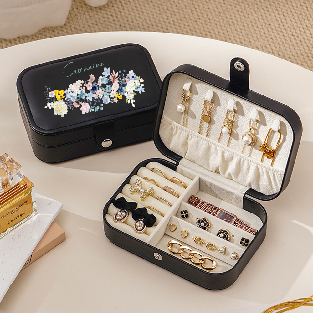 Personalized Flower Jewelry Box Customized Name Mini Jewelry Box Bridesmaid Gift PU Leather Ring Earrings Necklace Jewelry Box