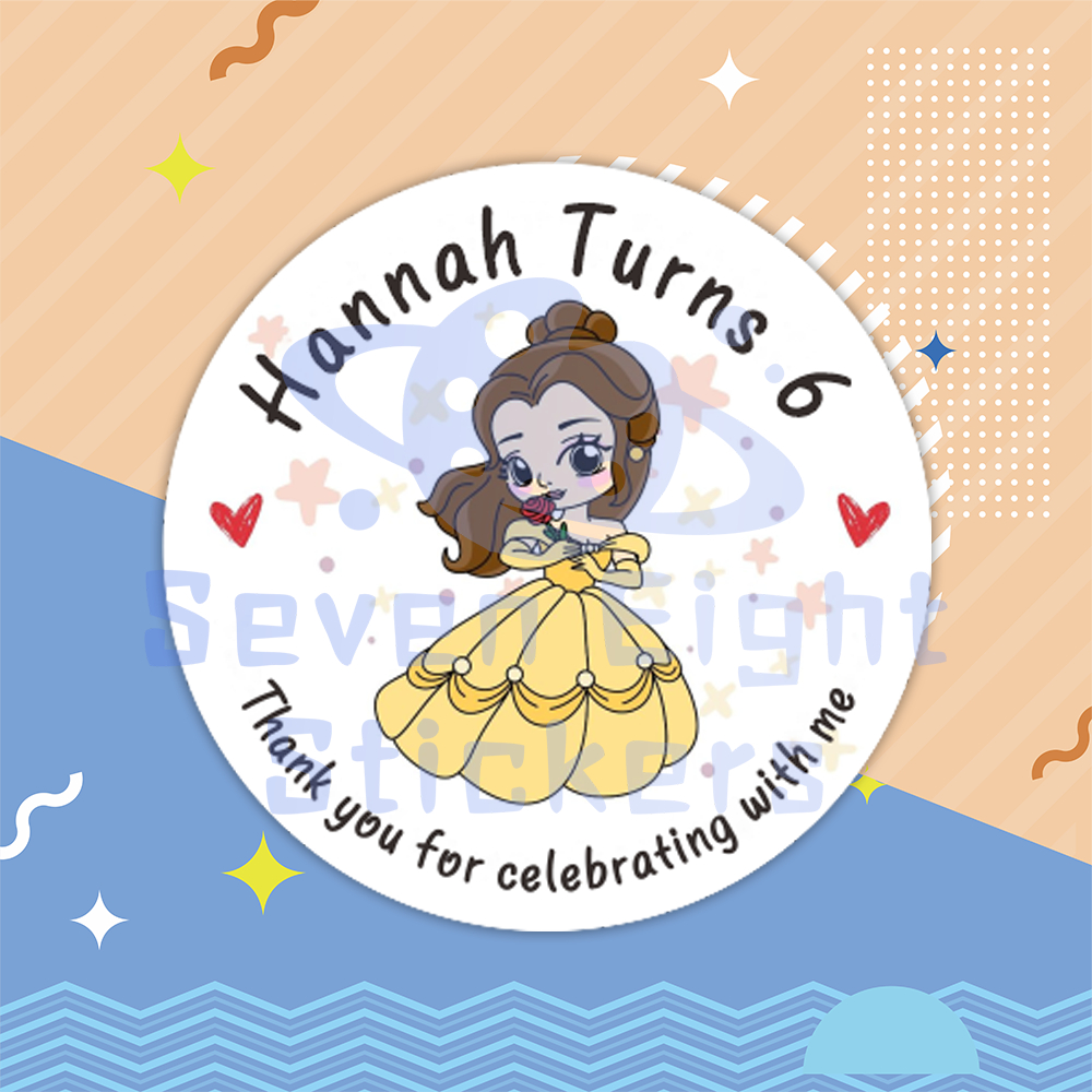 Personalized Princess birthday stickers | Birthday goodie bag stickers for girls | free design