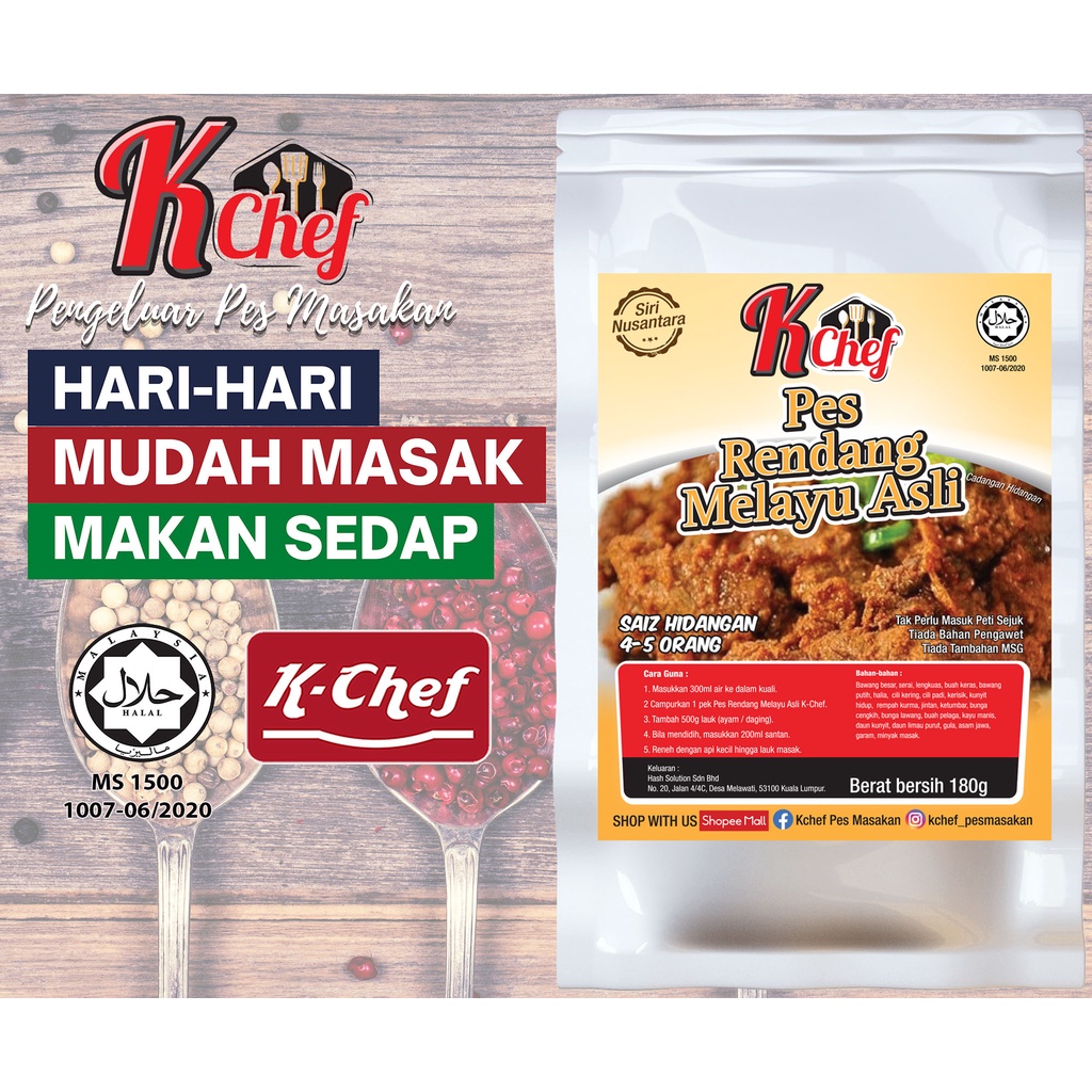Pes Rendang Melayu Asli K-Chef | HALAL MS1500 JAKIM | 180gram | Pes Segera | Instant Cooking Paste